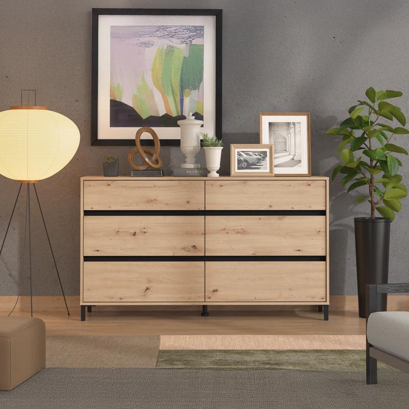 Η συρταριέρα - κόνσόλα MARRON 157 6F συνδυάζει κομψότητα και λειτουργικότητα με έναν διαχρονικό σχεδιασμό. Κατασκευασμένη από ανθεκτική μελαμίνη, διαθέτει έξι ευρύχωρα συρτάρια που προσφέρουν άφθονο αποθηκευτικό χώρο για ρούχα, λευκά είδη ή προσωπικά αντικείμενα.