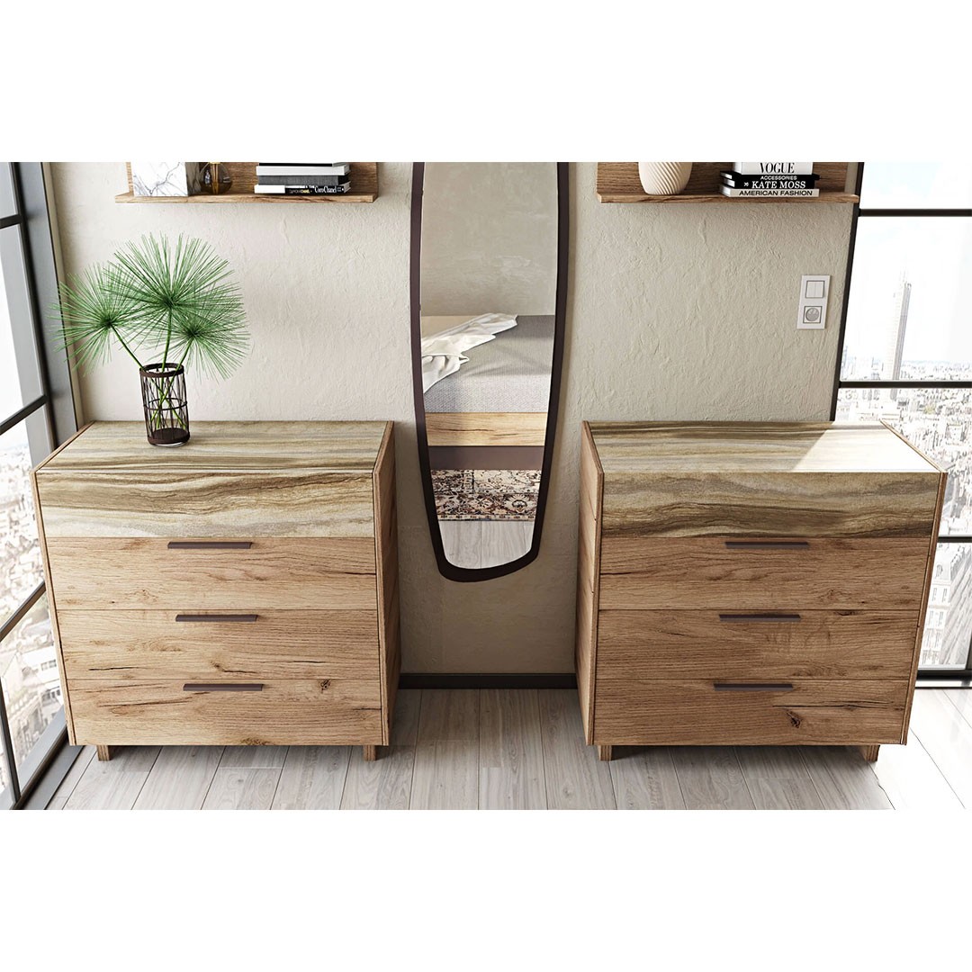 Η κομψότητα και η πρακτικότητα συναντιούνται στη συρταριέρα SICILIA, ένα έπιπλο που συνδυάζει σύγχρονη αισθητική με άνετους αποθηκευτικούς χώρους. Κατασκευασμένη από τεχνητό καπλαμά σε light brown rustic oak – καφέ δρύς χρώμα, αποπνέει ζεστασιά και φυσικό χαρακτήρα, ενώ οι καθαρές γραμμές της την καθιστούν ιδανική επιλογή για κάθε σύγχρονο χώρο.