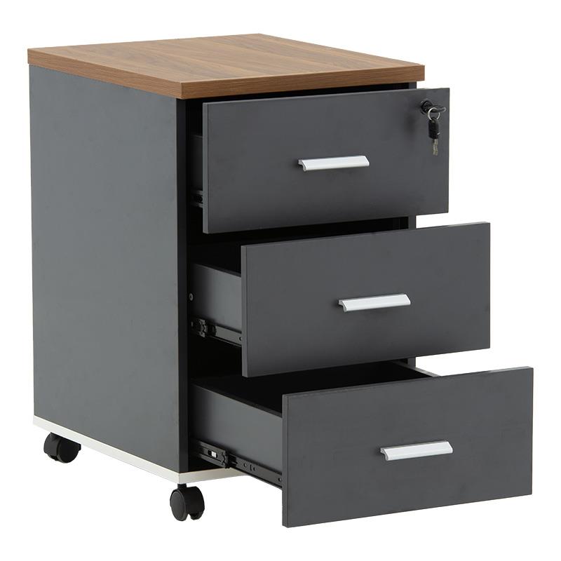 Τροχήλατη συρταριέρα Oscar στον εντυπωσιακό χρωματισμό του καρυδί. Κατασκευασμένη από υλικά υψηλών προδιαγραφών και σύμφωνα με τις εργονομικές απαιτήσεις του σήμερα.
