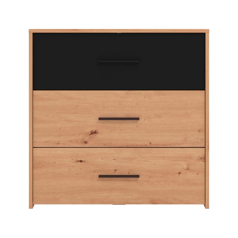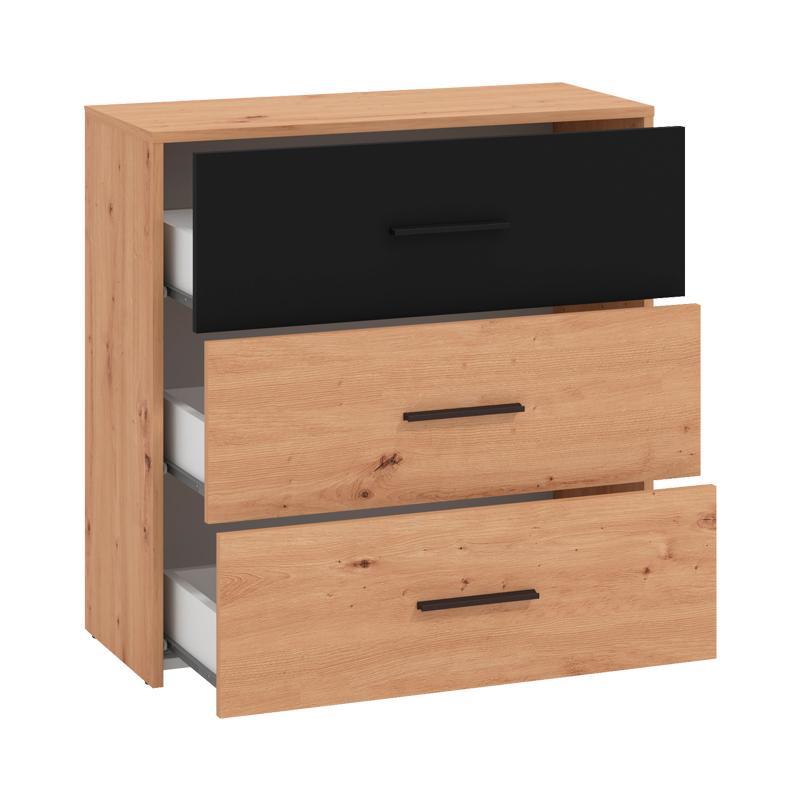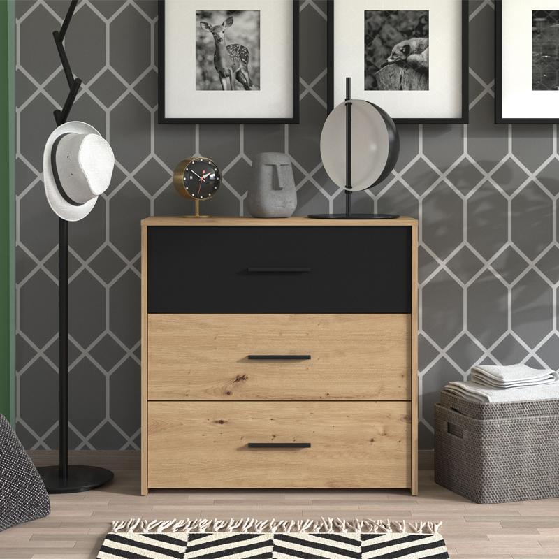 Η ξύλινη συρταριέρα Varadero 3F συνδυάζει το μοντέρνο στυλ με την πρακτικότητα και την ανθεκτικότητα. Διαθέτει τρία ευρύχωρα συρτάρια, ιδανικά για την αποθήκευση ρούχων, αξεσουάρ ή άλλων προσωπικών αντικειμένων. Ο συνδυασμός των χρωμάτων Artisan Oak και Μαύρο προσδίδει μια κομψή και σύγχρονη αισθητική, καθιστώντας τη κατάλληλη για κάθε σύγχρονο υπνοδωμάτιο ή χώρο εργασίας.