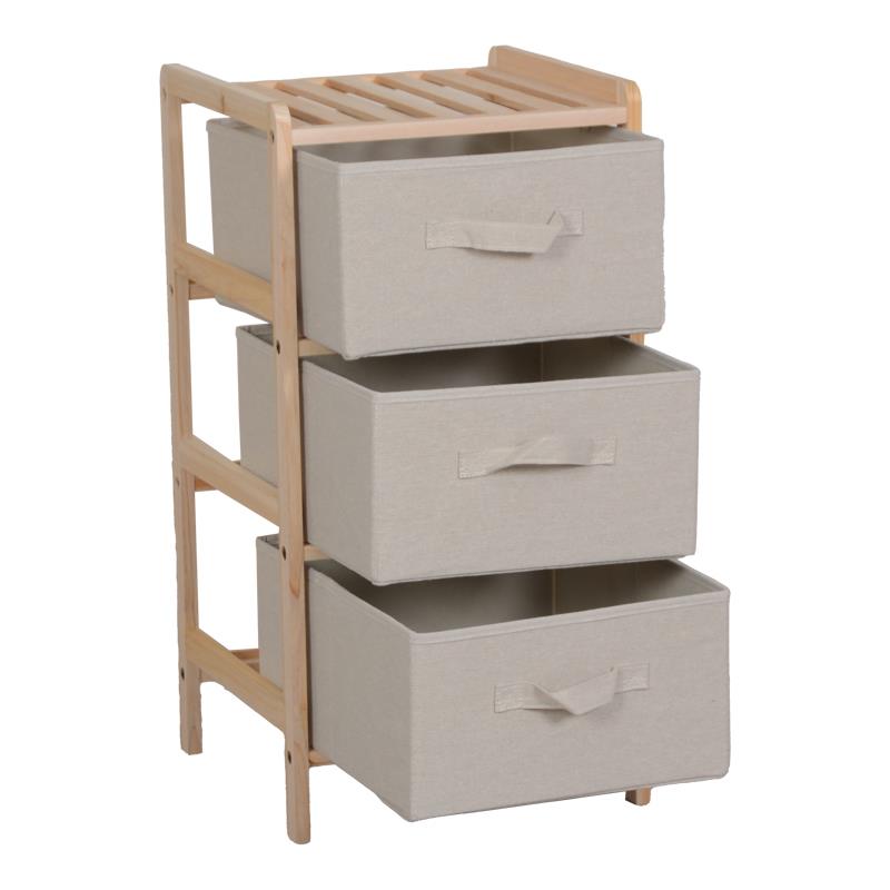 Οργανώστε τον χώρο σας με στυλ και ευκολία χάρη σε αυτή την compact και ευέλικτη συρταριέρα. Με σκελετό από ανθεκτικό ξύλο και τρία υφασμάτινα συρτάρια, αποτελεί την ιδανική λύση για να τακτοποιήσετε τα προσωπικά σας αντικείμενα με έναν καλαίσθητο τρόπο.