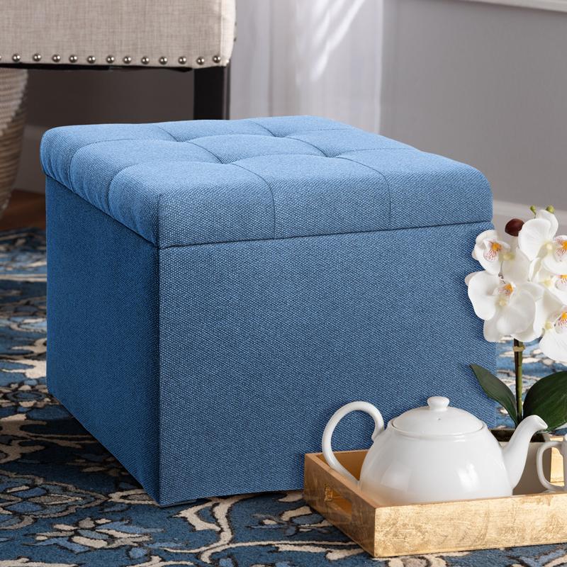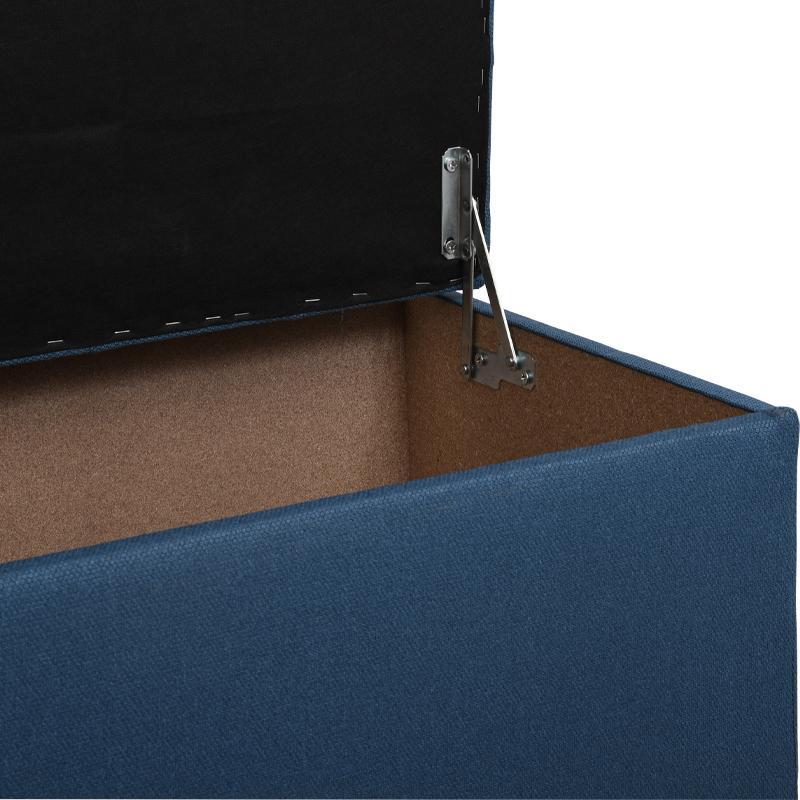 Το μοντέρνο μπλε χρώμα δίνει μια φρέσκια και κομψή αίσθηση, επιτρέποντας στο ταμπουρέ να ταιριάξει σε διάφορες διακοσμητικές επιλογές. Ο αποθηκευτικός του χώρος προσφέρει μια ιδανική λύση για την τακτοποίηση μικροαντικειμένων, όπως βιβλία, κουβέρτες ή αξεσουάρ.