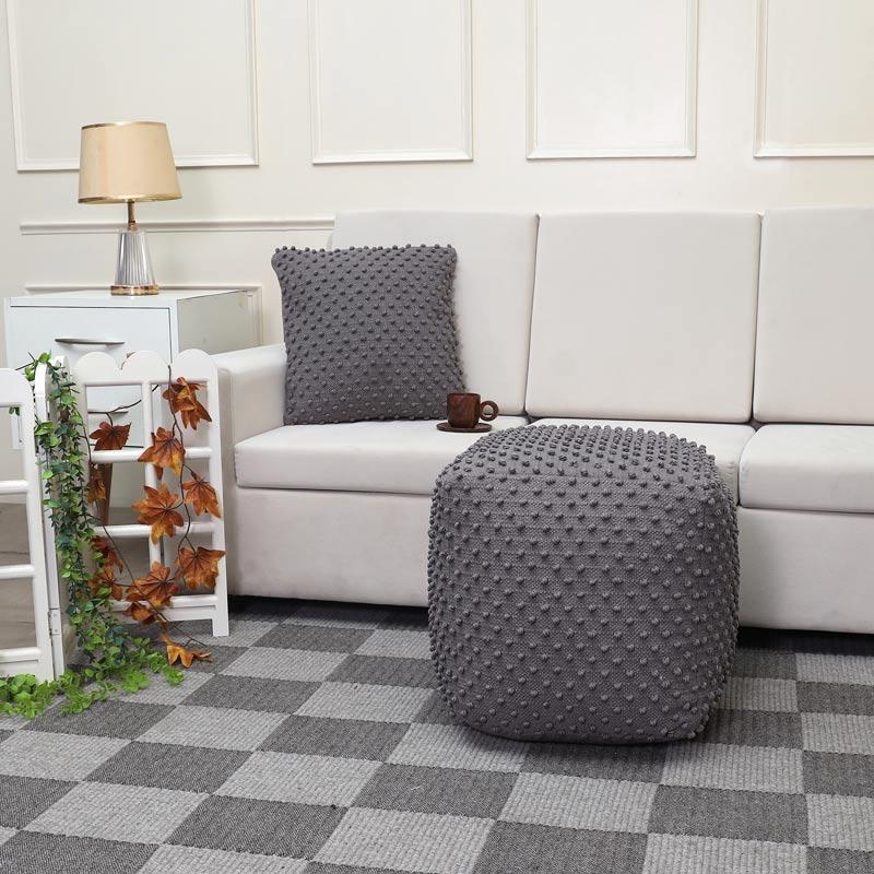 Εξωτερικό Υλικό: Το πουφ είναι κατασκευασμένο από υψηλής ποιότητας ύφασμα, το οποίο είναι βαμβακερό. Αυτά τα υλικά είναι ανθεκτικά και εύκολα στη συντήρηση, ενώ προσφέρουν μια απαλή και άνετη αίσθηση στην αφή.