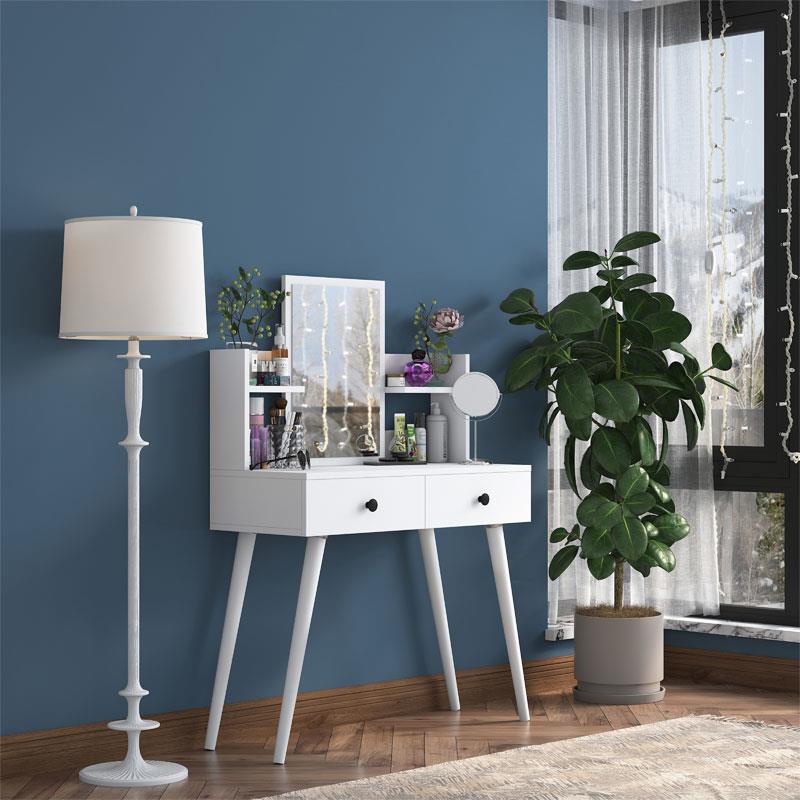 • Διαθέτει καθρέπτη και δυο συρτάρια για κλειστή αποθήκευση των αντικειμένων σας καθώς και ράφια για ανοιχτή οργάνωση των αξεσουάρ.