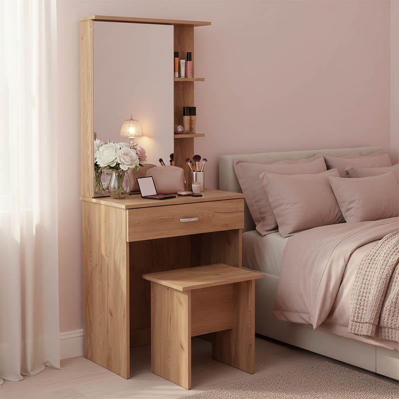 Τουαλέτα κρεβατοκάμαρας Zelia  με καθρέπτη και σκαμπό χρώμα φυσικό mo 60x40.5x151εκ