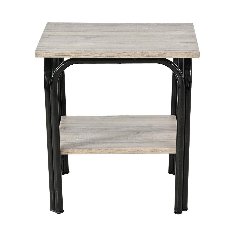 Ο μεταλλικός σκελετός του τραπεζιού εξασφαλίζει ανθεκτικότητα και σταθερότητα, ενώ οι ξύλινες επιφάνειες του προσδίδουν φυσική ζεστασιά και αισθητική αξία.
