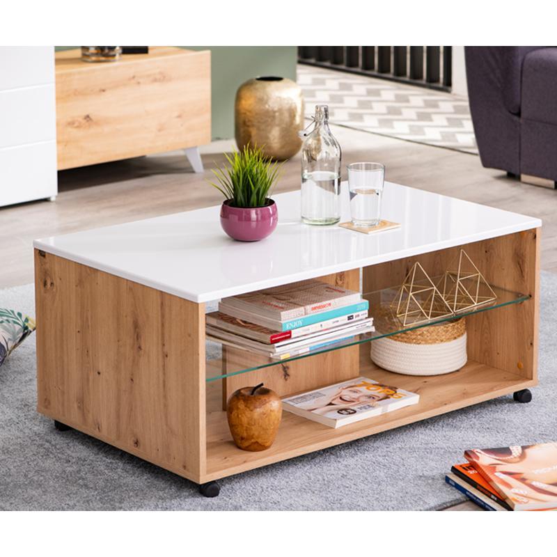 Τραπεζάκι Σαλονιού Bert Artisan Oak – Λευκή Λάκα 101x60x45 εκ.