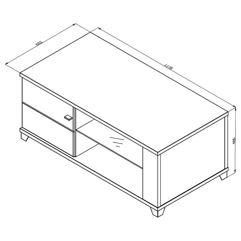 Η επιφάνεια του τραπεζιού, ευρύχωρη και ευκολοδιάθετη, προσφέρει τον ιδανικό χώρο για την τοποθέτηση διακοσμητικών αντικειμένων, περιοδικών, βιβλίων και ποτηριών, ενώ το ενσωματωμένο ντουλάπι επιτρέπει την κρυφή αποθήκευση καθημερινών αντικειμένων όπως τηλεχειριστηρίων και άλλων αξεσουάρ. Επιπλέον, ο ανοικτός αποθηκευτικός χώρος προσφέρει άμεση πρόσβαση σε μικρά αντικείμενα που θέλετε να διατηρείτε οργανωμένα, συμβάλλοντας στη διατήρηση ενός τακτοποιημένου και λειτουργικού χώρου.