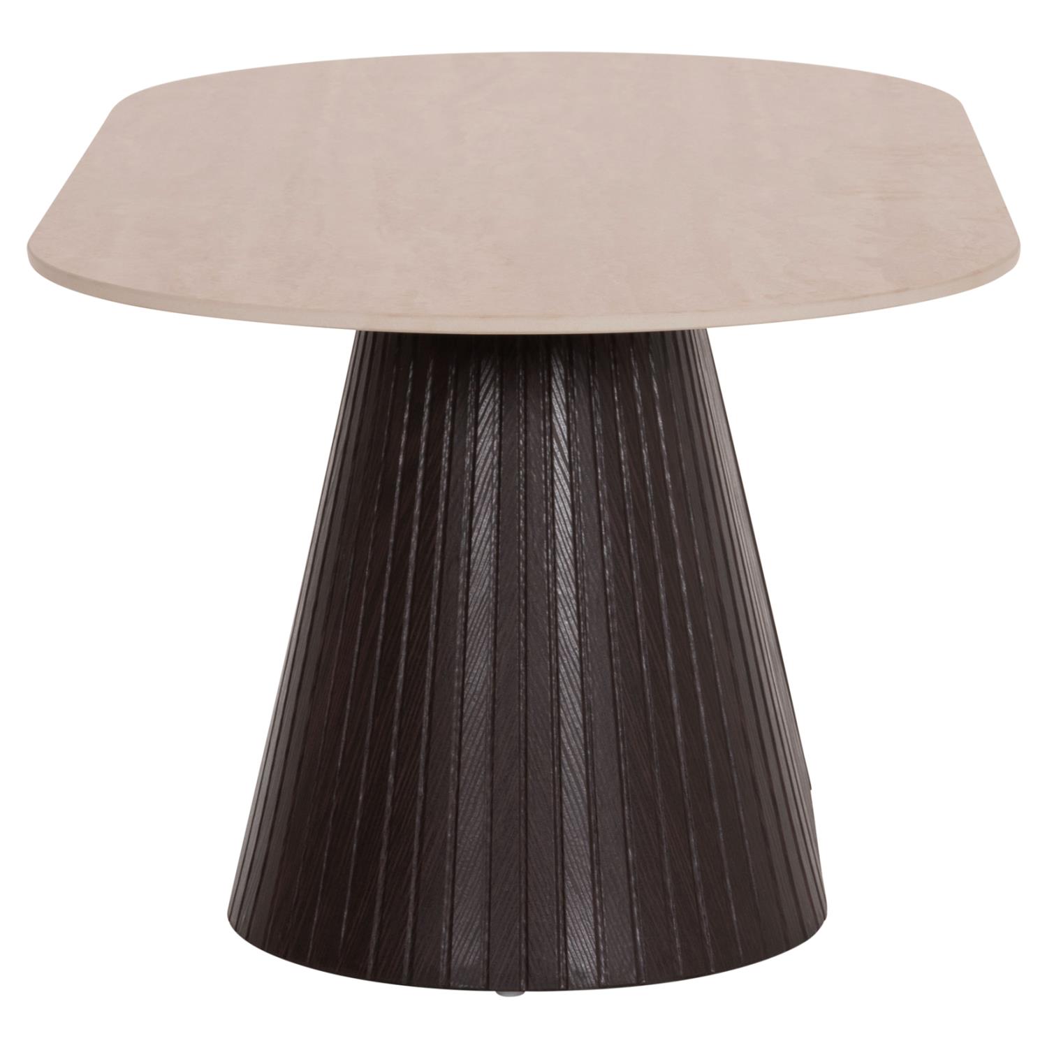 Το τραπέζι σαλονιού CATER είναι οβάλ και αποτελεί νέα προσθήκη στην γκάμα μας. Η επίπεδη επιφάνειά του είναι κεραμική σε χρωματισμό TRAVERTINE STONE, ενώ η βάση του είναι κατασκευασμένη εξολοκλήρου από MDF σε χρώμα ΣΚΟΥΡΟ ΚΑΦΕ, με όμορφες πτυχώσεις.