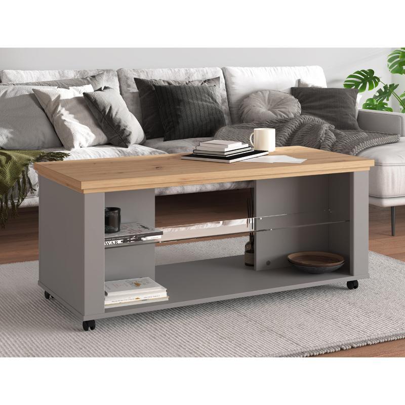 Το τραπεζάκι σαλονιού Valencia σε χρώμα Artisan Oak - Γκρί με ράφι από τζάμι συνδυάζει με επιδεξιότητα τη ζεστασιά του φυσικού ξύλου με την κομψότητα μιας σύγχρονης, minimal αισθητικής. Η επιφάνεια του τραπεζιού έχει απόχρωση Artisan Oak, που αναδεικνύει τις φυσικές υφές και τη ζεστασιά του ξύλου, ενώ ο τόνος Γκρί στα πλαίσια και τις λεπτομέρειες προσδίδει μια μοντέρνα αντίθεση, δημιουργώντας ένα εντυπωσιακό και διαχρονικό αποτέλεσμα.