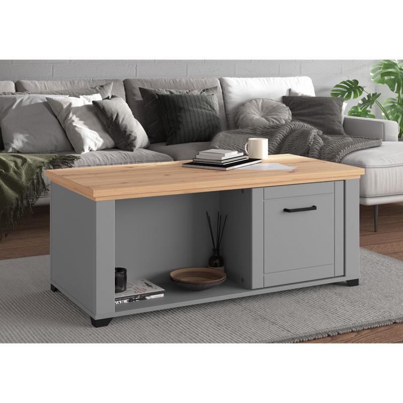 Το τραπεζάκι σαλονιού Valencia σε απόχρωση Γκρί – Artisan Oak είναι η ιδανική λύση για όσους επιθυμούν να συνδυάσουν το μοντέρνο design με την παραδοσιακή ζεστασιά του ξύλου σε ένα λειτουργικό έπιπλο. Η επιφάνεια του τραπεζιού σε απόχρωση Artisan Oak που προσδίδουν μια σύγχρονη και κομψή εμφάνιση, ενώ ο υπόλοιπος σκελετός σε απόχρωση Γκρί Γραφίτη αλλά και Γκρί Ματ, αναδεικνύουν την αυθεντικότητα και τη φυσική ομορφιά του επίπλου.