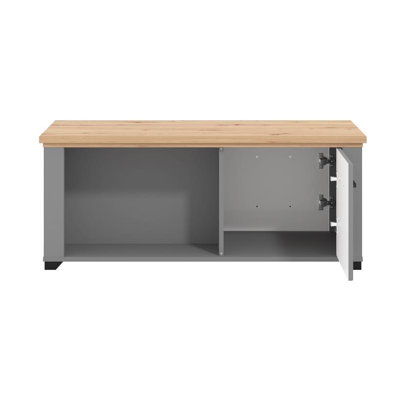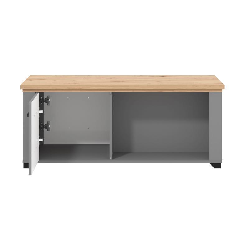 Το Valencia ξεχωρίζει για τον έξυπνο σχεδιασμό του που περιλαμβάνει ενσωματωμένο ντουλάπι, ιδανικό για την κρυφή αποθήκευση αντικειμένων, όπως βιβλία, περιοδικά ή ηλεκτρονικές συσκευές, συμβάλλοντας στη διατήρηση ενός οργανωμένου χώρου. Επιπλέον, ο ανοικτός αποθηκευτικός χώρος επιτρέπει την άμεση πρόσβαση σε μικρά αντικείμενα ή διακοσμητικά στοιχεία, ενώ παράλληλα προσδίδει μια διακριτική λειτουργικότητα στο έπιπλο.