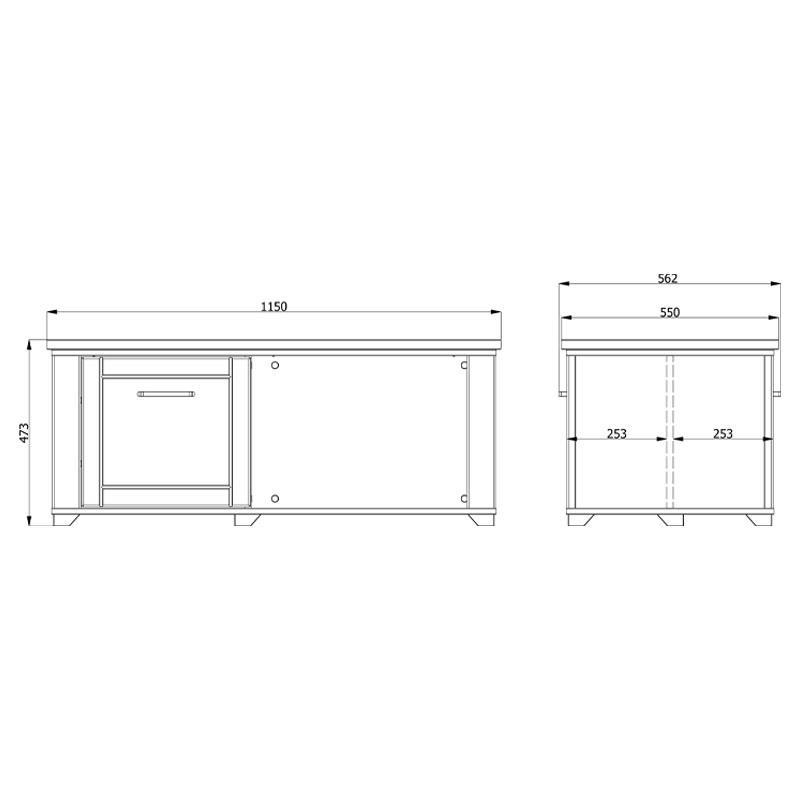 Πλάτος: 115 εκ. / Βάθος: 55 εκ. / Ύψος: 47,5 εκ.