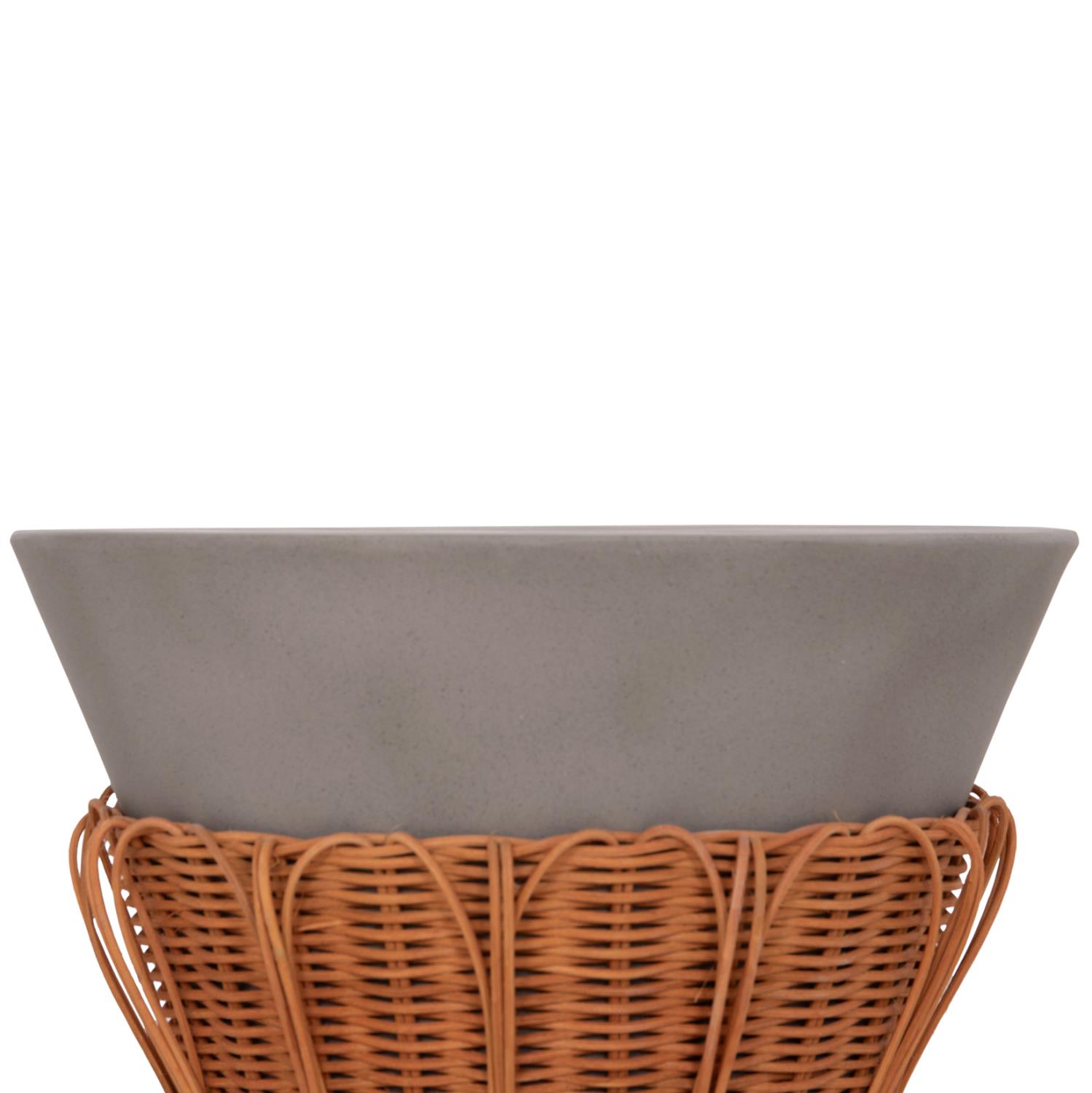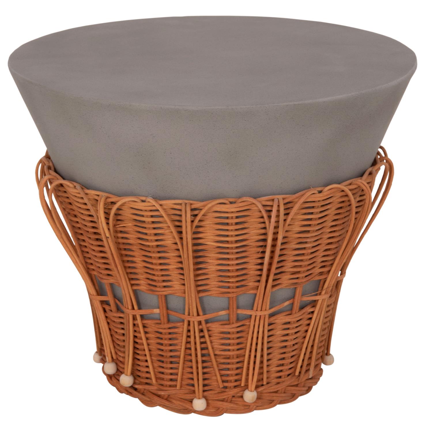 Το βοηθητικό τραπεζάκι PERRAL είναι στρογγυλό σε σχήμα ανάποδου κώνου με όμορφη διακόσμηση από φυσικό Rattan στην βάση του. Είναι κατασκευασμένο εξολοκλήρου από Fiber Cement σε ΓΚΡΙ χρώμα και αποτελεί ιδανικό συμπλήρωμα τόσο για το σπίτι, όσο και για επαγγελματικούς χώρους, όπως ξενοδοχεία, AirBnB, κτλ.