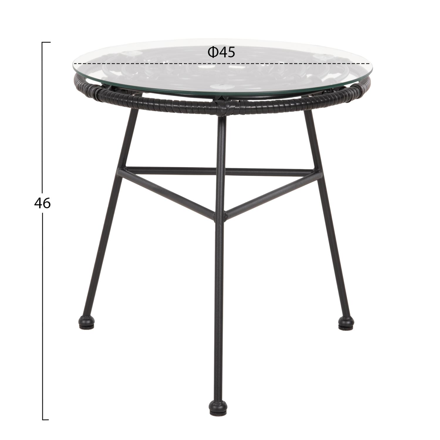 ΤΡΑΠΕΖΑΚΙ ΣΤΡΟΓΓΥΛΟ ΜΑΥΡΟ ΜΕΤΑΛΛΙΚΟ ALLEGRA  ΜΑΥΡΟ WICKER-ΓΥΑΛΙ Φ45x46Υεκ