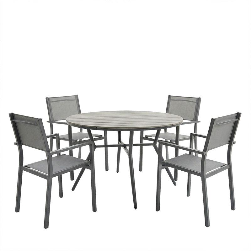 Σετ Κήπου Τραπεζαρία Appa – Moly 5 τεμ σε Ανθρακί Αλουμίνιο – Plywood με Τραπέζι Φ120×74εκ.