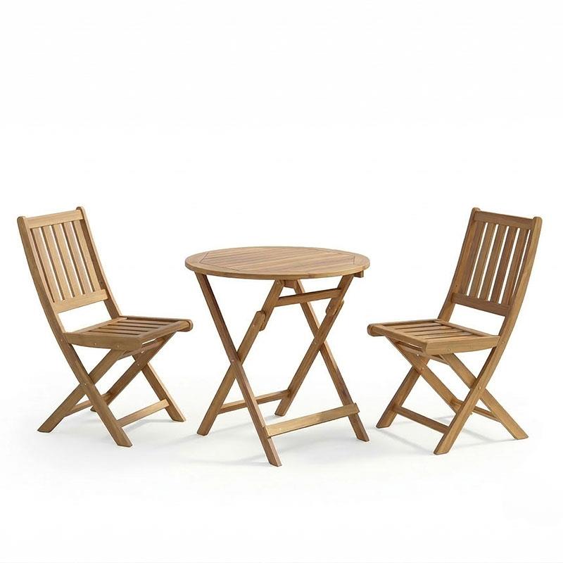 Σετ Τραπεζαρία Elijie-Carpuva 3τεμ πτυσσόμενο φυσικό μασίφ ξύλο ακακίας Φ70×74εκ