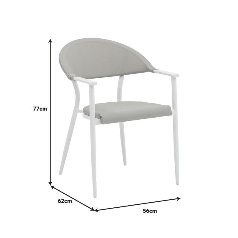- Σταθερός σκελετός από εξαιρετικής ποιότητας αλουμίνιο (Dia.28xT1.5mm) με αντοχή στην καταπόνηση και στη φθορά. Κυρίως σώμα καρέκλας από εξαιρετικής ποιότητας textilene. Το textilene είναι ύφασμα μεγάλης αντοχής στην ηλιακή ακτινοβολία και την υγρασία ενώ παράλληλα αφήνει το δέρμα να "αναπνέει" δημιουργώντας έτσι άνεση στο κάθισμα.