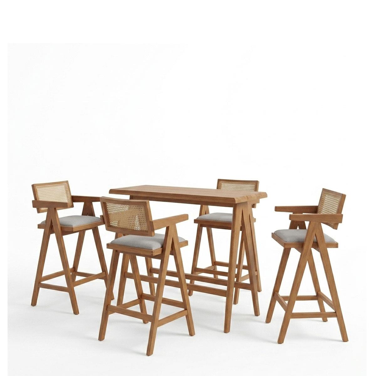 Το σετ αποτελείται από τέσσερα σκαμπό μπαρ και ένα τραπέζι: