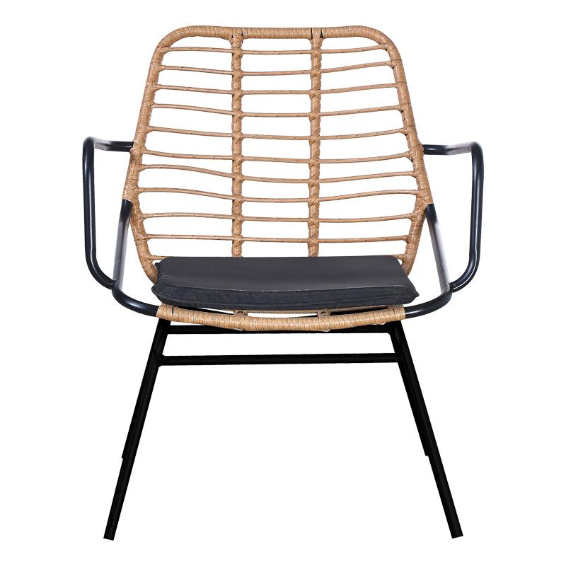 - Κυρίως επιφάνεια καρέκλας από PE rattan σε φυσικόχρώμα. Το PE rattan είναι ένα είδος οικολογικού συνθετικού rattan, ανακυκλώσιμο και με μεγαλύτερη ανθεκτικότητα σε σχέση με τα άλλα είδη.