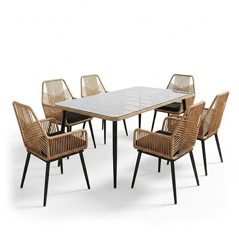 - Κυρίως επιφάνεια τραπεζιού από PE rattan. Το PE rattan είναι ένα είδος οικολογικού συνθετικού rattan, ανακυκλώσιμο και με μεγαλύτερη ανθεκτικότητα σε σχέση με τα άλλα είδη.