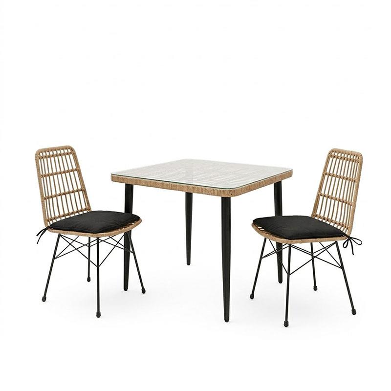 - Κυρίως επιφάνεια τραπεζιού από PE rattan. Το PE rattan είναι ένα είδος οικολογικού συνθετικού rattan, ανακυκλώσιμο και με μεγαλύτερη ανθεκτικότητα σε σχέση με τα άλλα είδη.