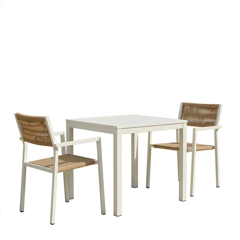 Σετ Τραπεζαρία Savor-Kliton 3τεμ λευκό αλουμίνιο και rattan σε φυσικό χρώμα 80x80x74εκ