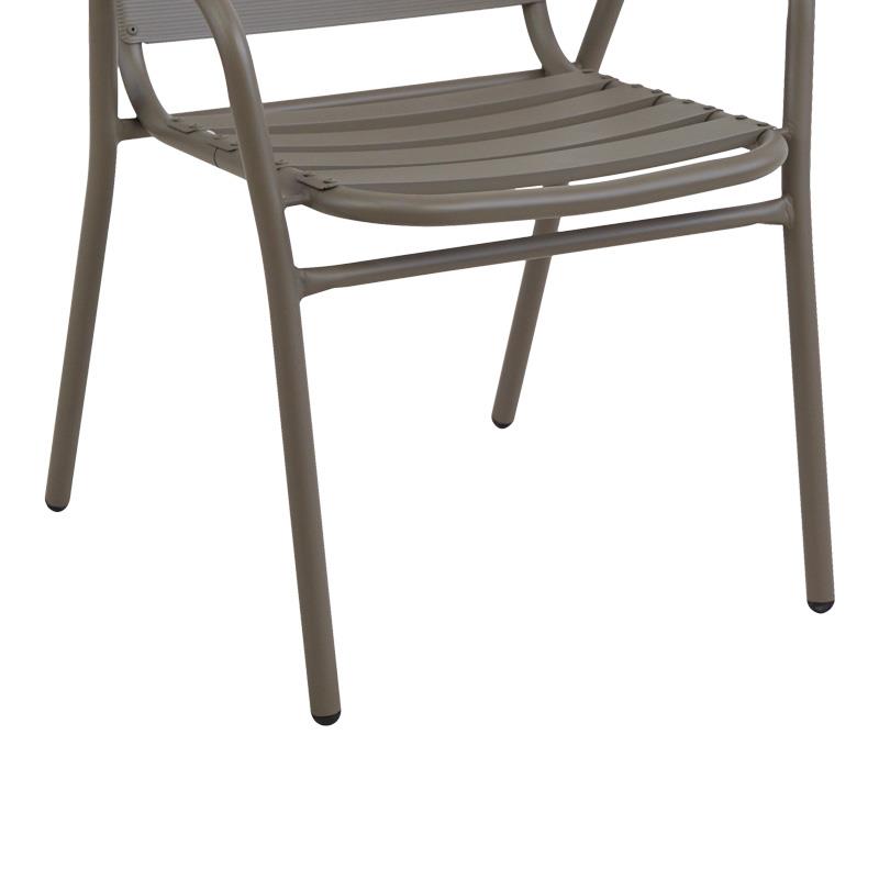 - Σταθερός σκελετός από μέταλλο εξαιρετικής ποιότητας με αντοχή σε φθορά και χρόνο, ενώ τα κομμάτια έδρας και πλάτης είναι κατασκευασμένα από φέτες αλουμινίου. Το μέταλλο παρέχει ανθεκτικότητα και σταθερότητα, ενώ οι φέτες αλουμινίου προσθέτουν ελαφρότητα και μια μοντέρνα αίσθηση στον σχεδιασμό. Η πολυθρόνα αυτή είναι ιδανική για χρήση σε εξωτερικούς χώρους, καθώς η ανθεκτικότητα στις καιρικές συνθήκες του αλουμινίου την καθιστά ανθεκτική σε έκθεση στον ήλιο και την υγρασία.