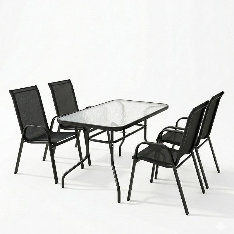 Σετ κήπου Τραπεζαρία Valor – Calan 5 τεμ. μέταλλο μαύρο – γυαλί – textilene μαύρο 110x60x70 εκ.