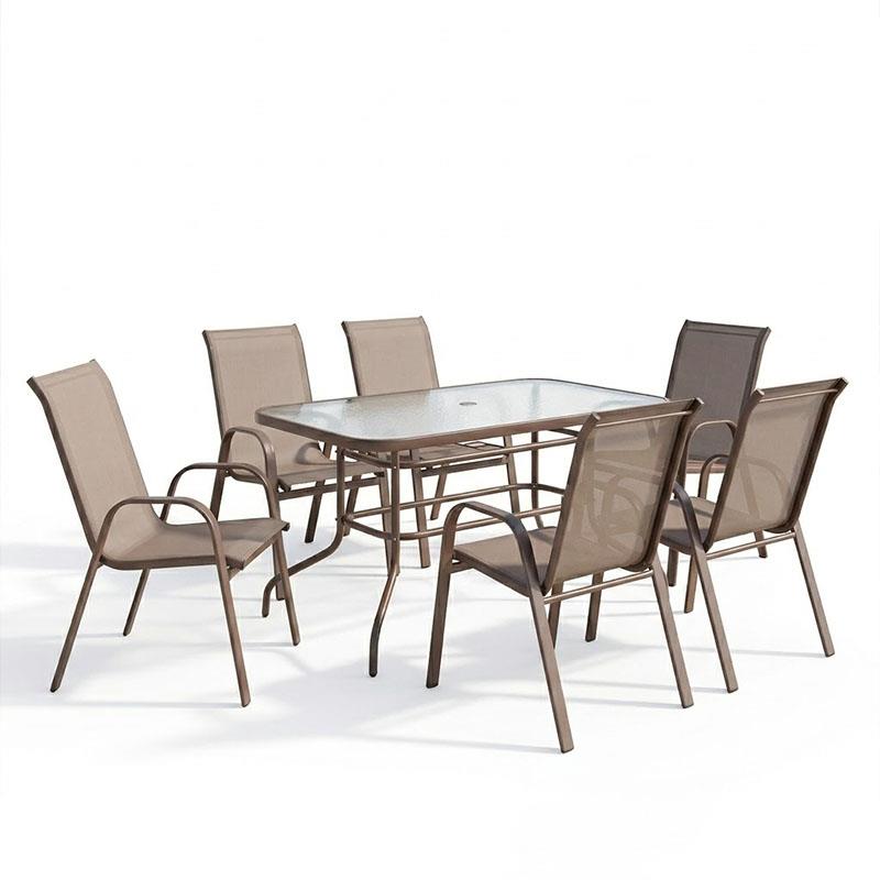 - Σταθερός σκελετός από μέταλλο με αντοχή στην καταπόνηση και στη φθορά. Κυρίως σώμα καρέκλας από εξαιρετικής ποιότητας textilene. Το textilene είναι ύφασμα μεγάλης αντοχής στην ηλιακή ακτινοβολία και την υγρασία ενώ παράλληλα αφήνει το δέρμα να "αναπνέει" δημιουργώντας έτσι άνεση στο κάθισμα.