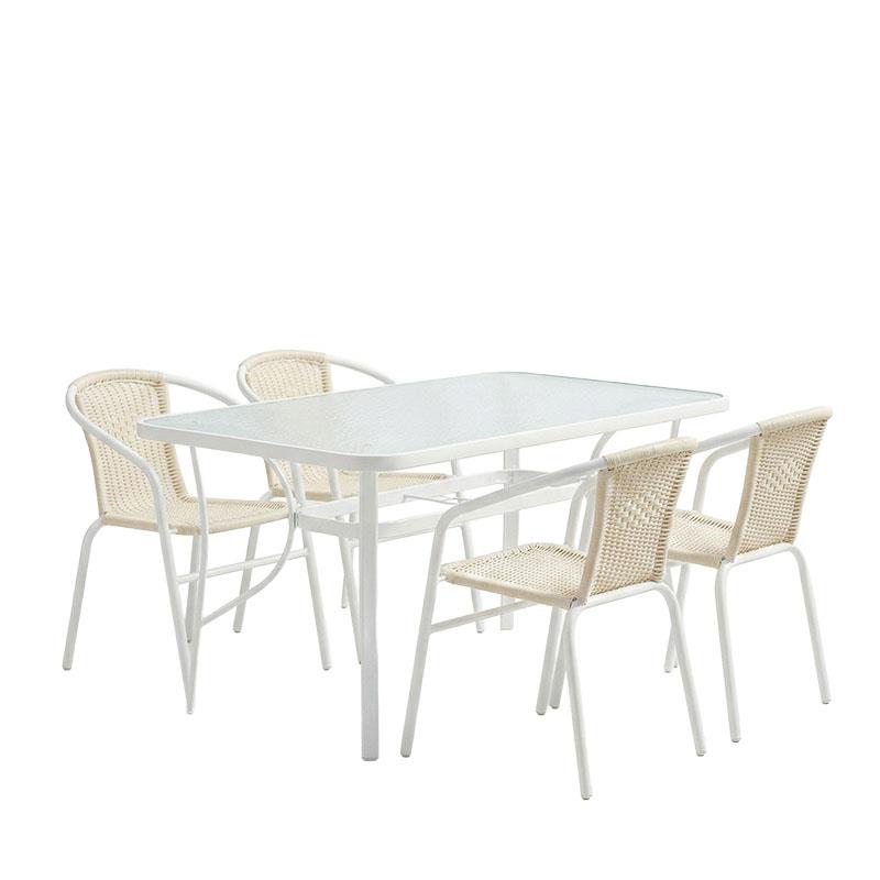 Σταθερός σκελετός από μέταλλο με αντοχή στην καταπόνηση και στη φθορά. Κυρίως σώμα έδρας-πλάτης από εξαιρετικής ποιότητας PE rattan. Το PE rattan είναι ένα είδος οικολογικού συνθετικού rattan, ανακυκλώσιμο και με μεγαλύτερη ανθεκτικότητα σε σχέση με τα άλλα είδη.
