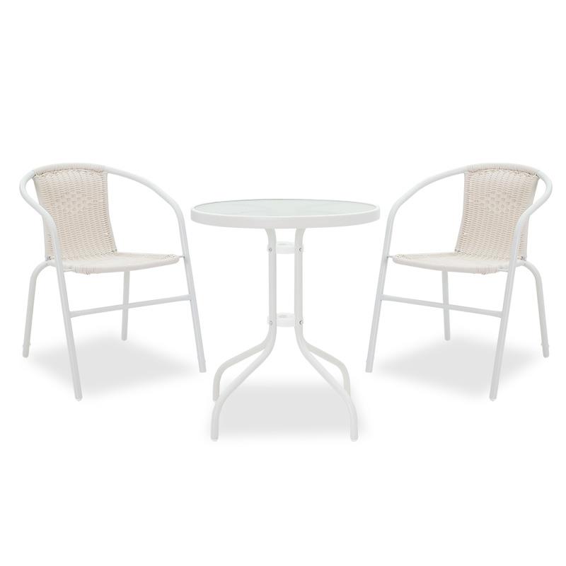 Σετ κήπου - Τραπεζαρία Watson-Obbi 3 τεμ. μέταλλο λευκό - γυαλί Φ60x70 εκ.