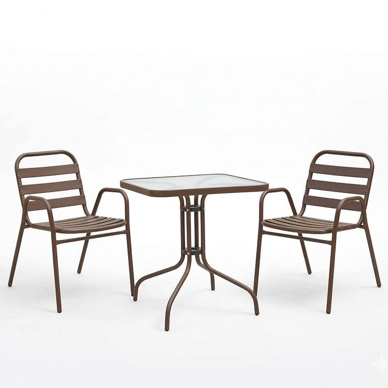Σετ κήπου Τραπεζαρία Watson-Sussie 3 τεμ. μέταλλο καφέ – γυαλί 70x70x70 εκ.