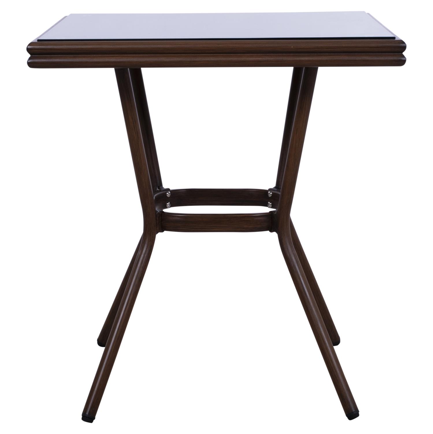 Τραπέζι HARLOW Αλουμινίου Bamboo Look Καφέ με Γυαλί 70x70x76 εκ.