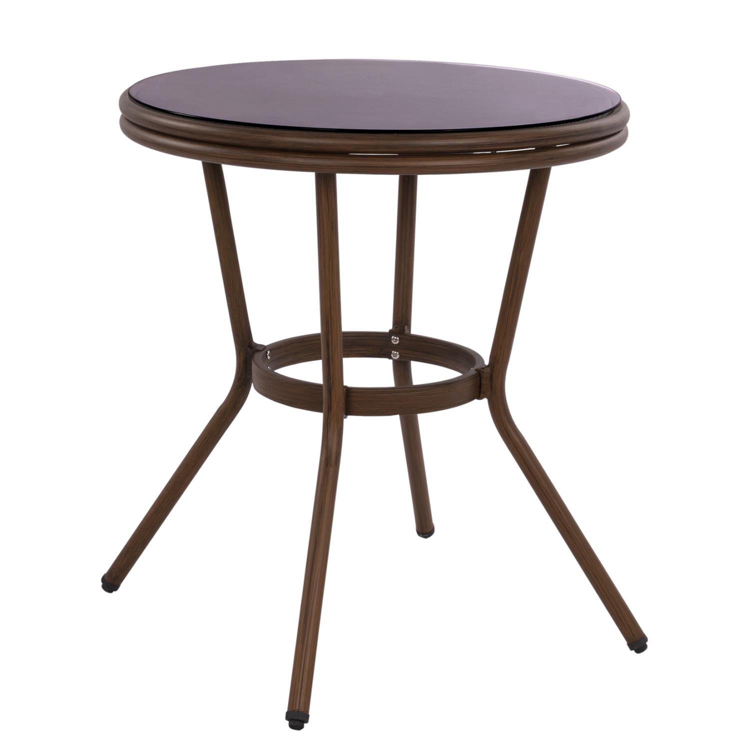 Τραπέζι αλουμινίου bamboo look εξωτερικού χώρου με textilene στην επιφάνειά του και ενσωματωμένο τζάμι.