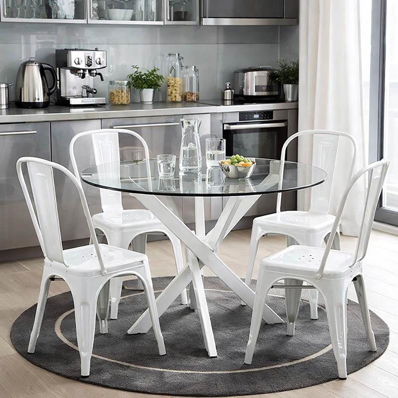 Τραπέζι Antoro γυαλί και μεταλλικά πόδια σε λευκή απόχρωση Φ80×75εκ
