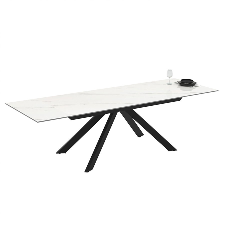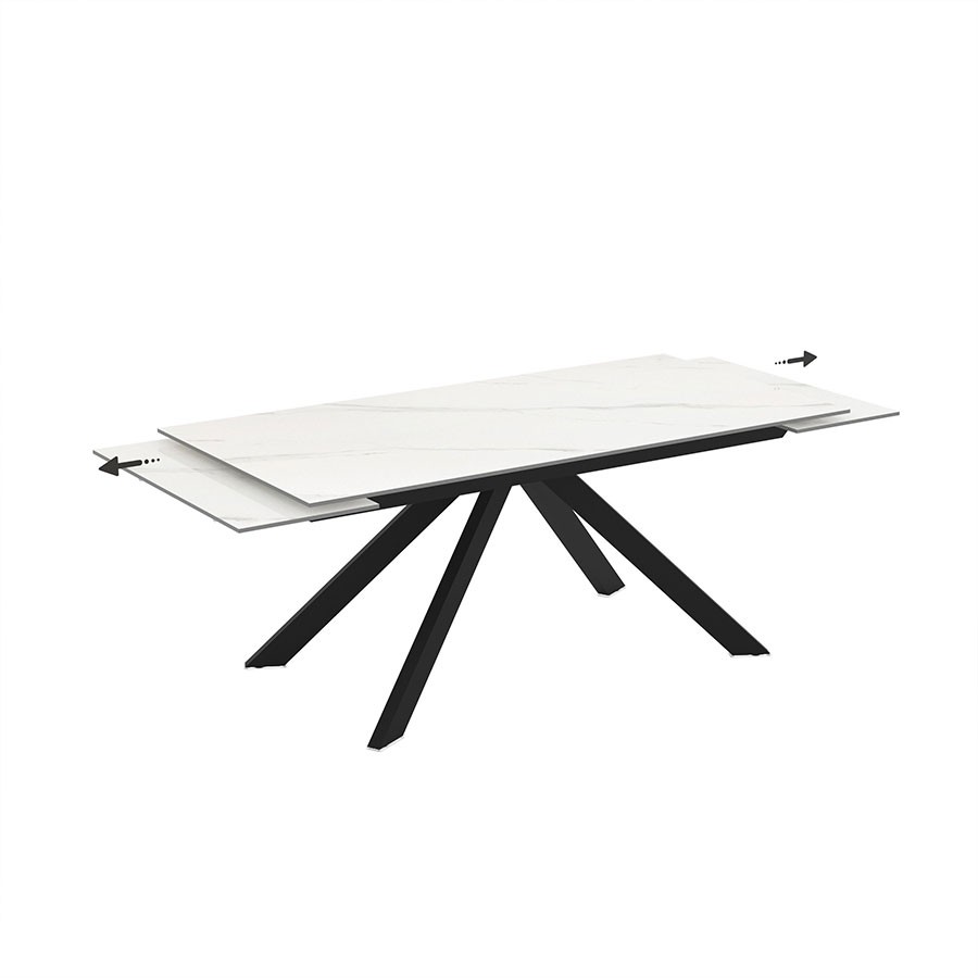 Η μεταλλική βάση με πόδια σε σχήμα Χ, σε ανθρακί-μαύρη απόχρωση, προσφέρει εξαιρετική σταθερότητα και προσδίδει δυναμικό, βιομηχανικό χαρακτήρα. Ο συνδυασμός κεραμικής επιφάνειας και μετάλλου δημιουργεί ένα σύγχρονο και ταυτόχρονα κομψό αποτέλεσμα, που ταιριάζει άψογα σε κάθε μοντέρνο χώρο τραπεζαρίας.