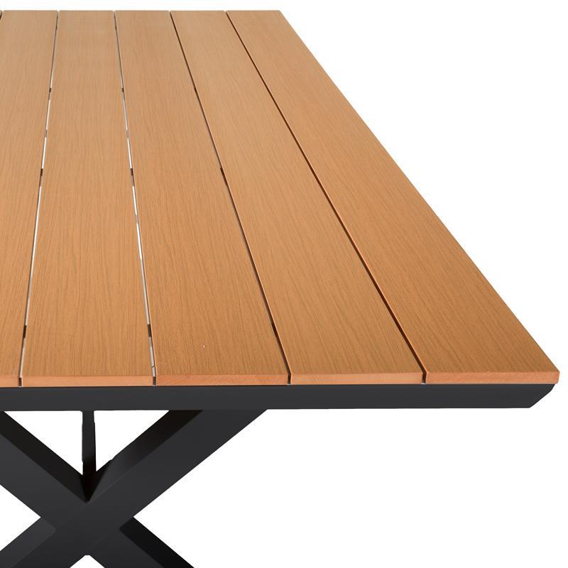 Αισθητική: Το polywood προσδίδει στο τραπέζι την εμφάνιση του φυσικού ξύλου, χωρίς όμως τα προβλήματα συντήρησης που συνήθως συνοδεύουν το ξύλο. Η συνδυασμένη αισθητική του ξύλου με το μοντέρνο μέταλλο καθιστά το τραπέζι ιδανικό για κάθε είδους εξωτερικό χώρο, από παραδοσιακούς κήπους μέχρι μοντέρνες βεράντες.