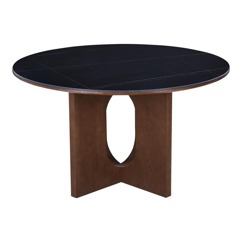 Τραπέζι Merge sintered stone-mdf σε μαύρο μαρμάρου με καρυδί βάση Φ130×75εκ