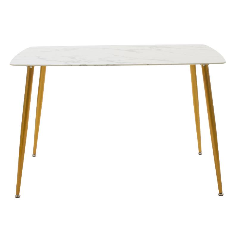 Τραπέζι Paris pakoworld οβάλ γυαλί 8mm σχέδιο μαρμάρου-χρυσό 120x80x75εκ