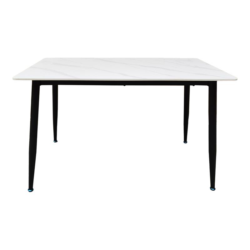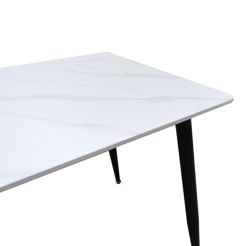 Αναβαθμίστε τον χώρο σας με αυτό το μοντέρνο και λειτουργικό τραπέζι τραπεζαρίας Pembe. Η εντυπωσιακή επιφάνεια σε εφε λευκού μαρμάρου προσδίδει μια αίσθηση πολυτέλειας και φινέτσας, ενώ τα στιλάτα, κωνικά μαύρα μεταλλικά πόδια εξασφαλίζουν σταθερότητα και ανθεκτικότητα.