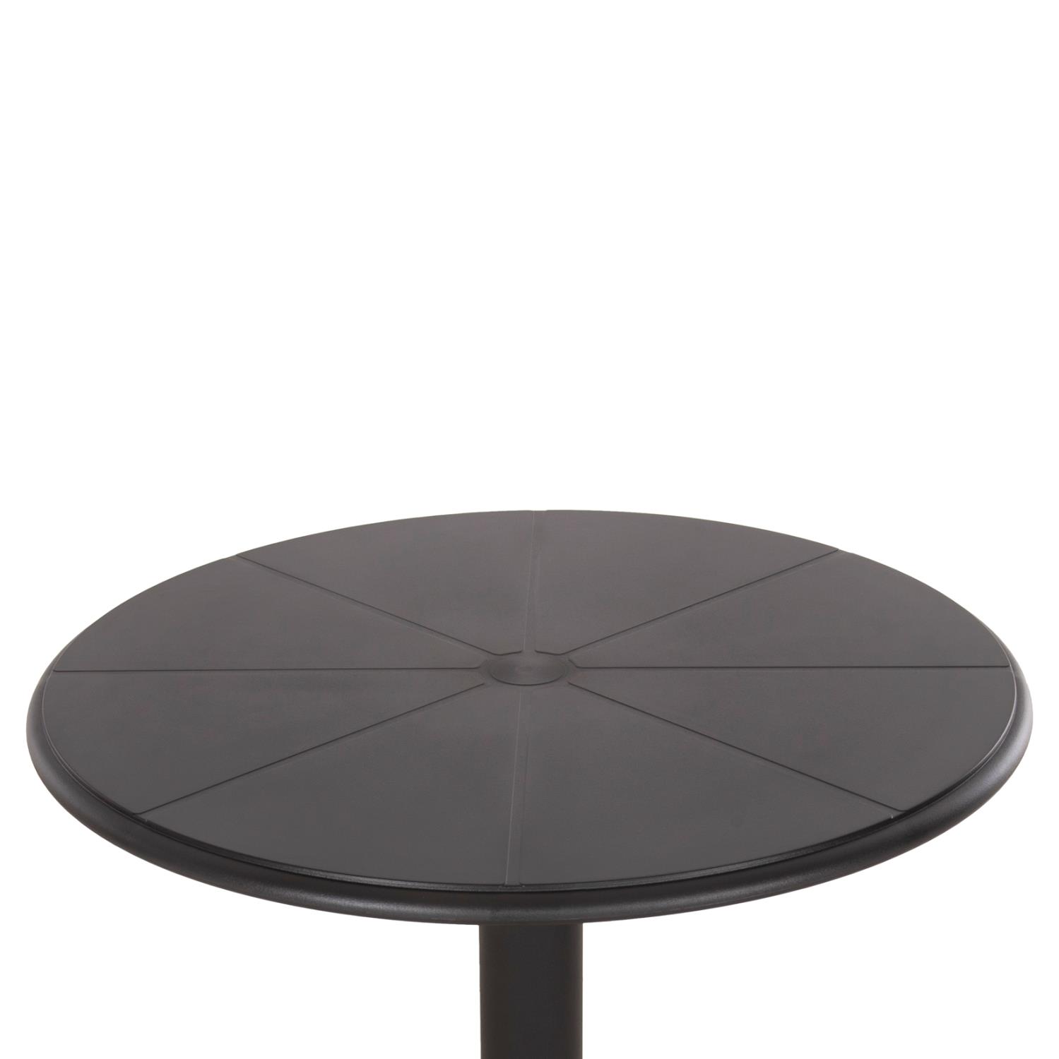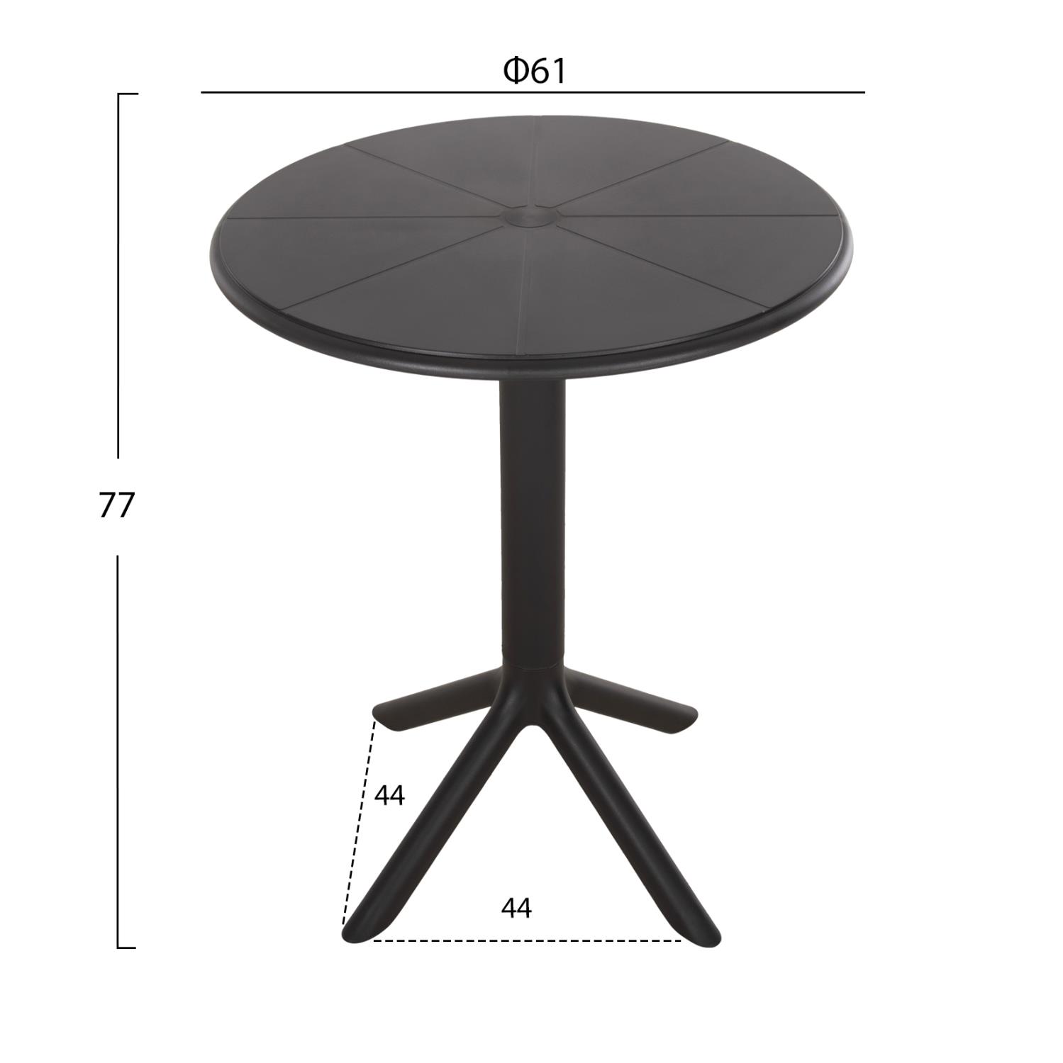 Το τραπέζι πολυπροπυλενίου TERRIN σε ΜΑΥΡΟ χρώμα είναι η ιδανική πρόταση για χρήση σε εξωτερικούς χώρους, είτε επαγγελματικούς (χώροι δεξιώσεων, εταιρείες catering, κλπ.) είτε για το σπίτι. Το τραπέζι είναι στρογγυλό, ενώ η στήριξη γίνεται με μια κολώνα στο κέντρο που καταλήγει σε 4 πόδια («νύχια»).