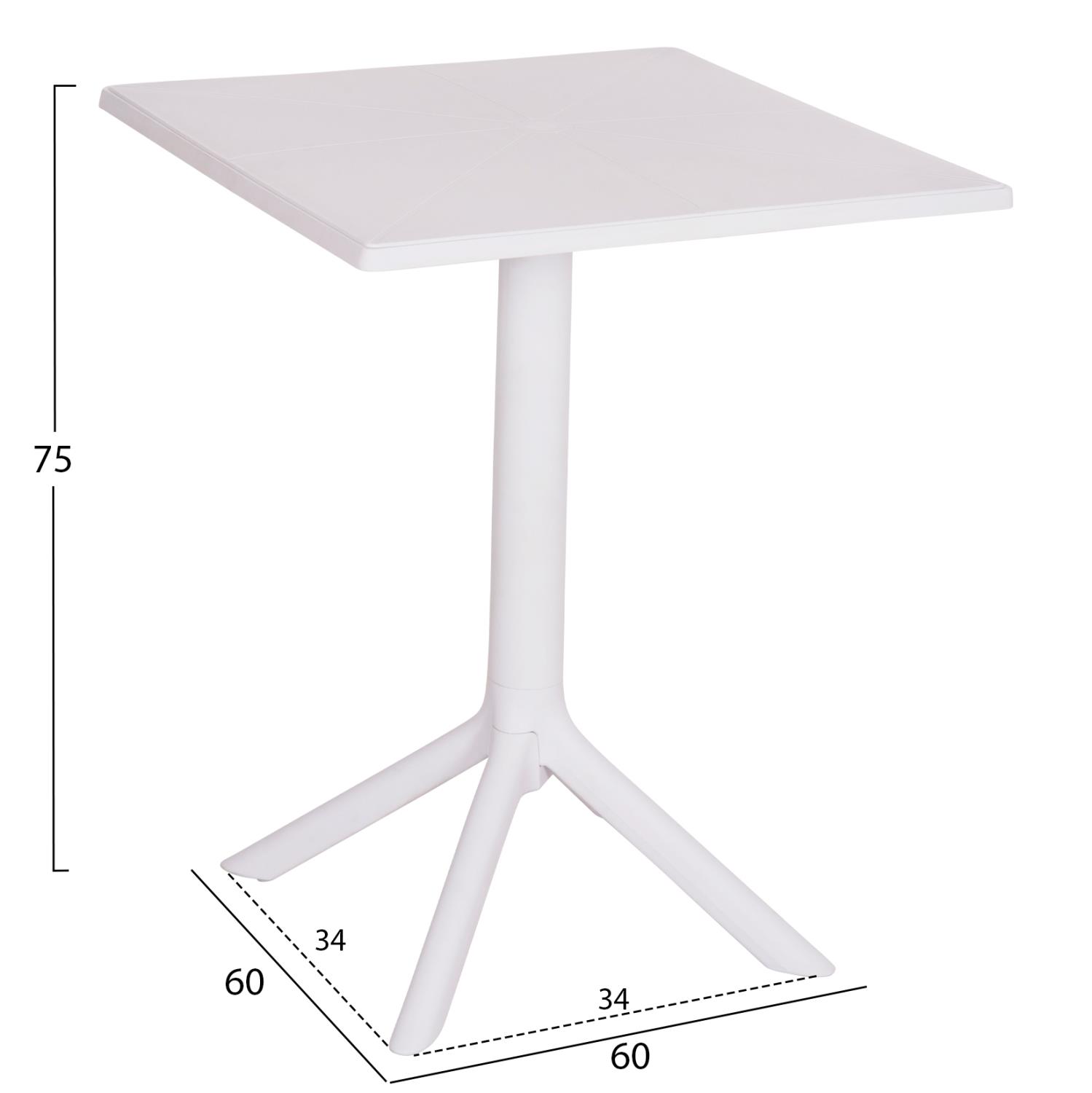 Το τραπέζι πολυπροπυλενίου TERRIN σε ΛΕΥΚΟ χρώμα είναι η ιδανική πρόταση για χρήση σε εξωτερικούς χώρους, είτε επαγγελματικούς (χώροι δεξιώσεων, εταιρείες catering, κλπ.) είτε για το σπίτι. Το τραπέζι είναι τετράγωνο, ενώ η στήριξη γίνεται με μια κολώνα στο κέντρο που καταλήγει σε 4 πόδια («νύχια»).