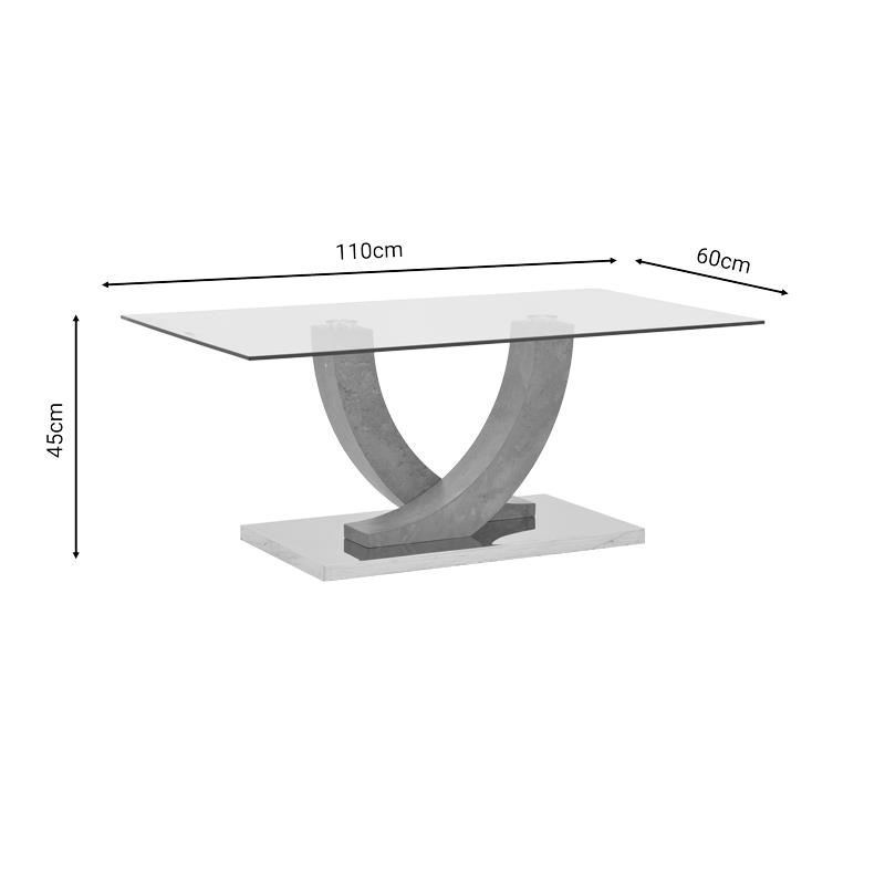 Τραπέζι σαλονιού Kasmora γκρι ξύλο-γυαλί 110x60x45εκ