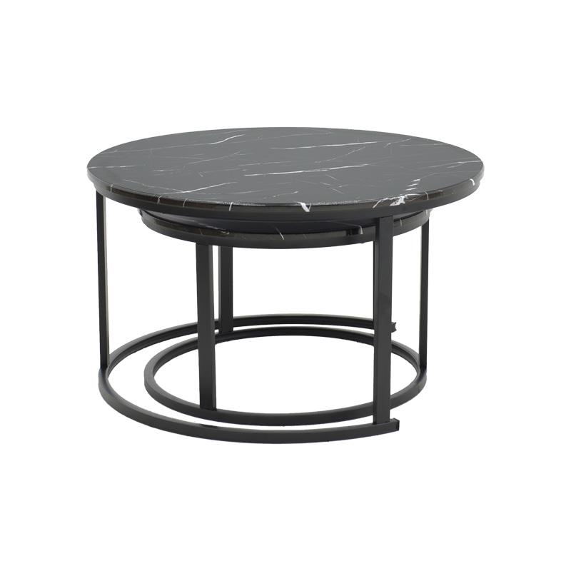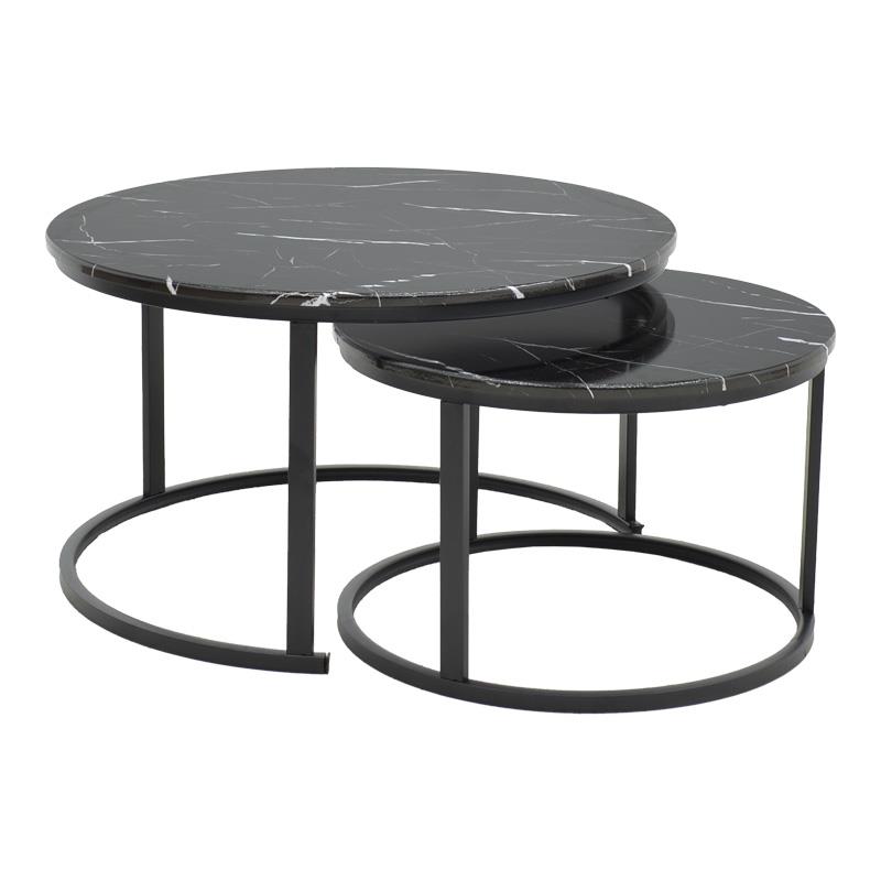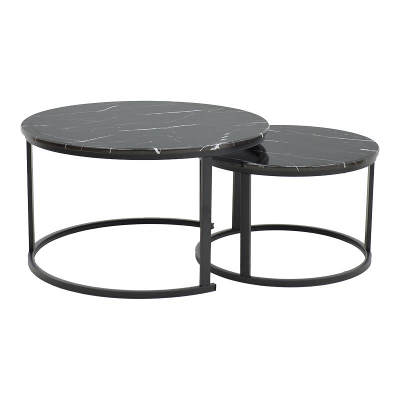 Τραπεζάκι σαλονιού Revelon σετ 2τεμ MDF σε όψη Μαύρου Μάρμαρου 80x80x45εκ.