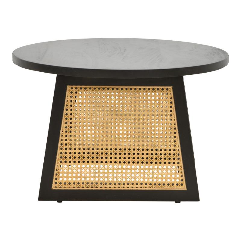 Τραπεζάκι Σαλονιού Tamarind με Μαύρο Ξύλο Mango & Φυσικό Rattan Φ65×40εκ.