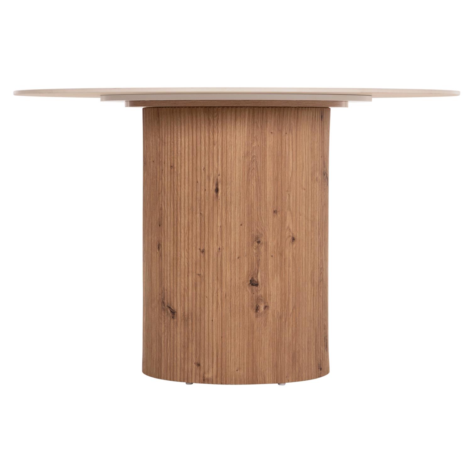 Το τραπέζι τραπεζαρίας TWIL είναι στρογγυλό και αποτελεί νέα προσθήκη στην γκάμα μας. Η επίπεδη επιφάνειά του είναι κεραμική σε χρωματισμό TRAVERTINE STONE, ενώ η βάση του είναι κυλινδρική κατασκευασμένη εξολοκλήρου από MDF σε χρώμα ΦΥΣΙΚΟΥ ΞΥΛΟΥ, με όμορφες πτυχώσεις.