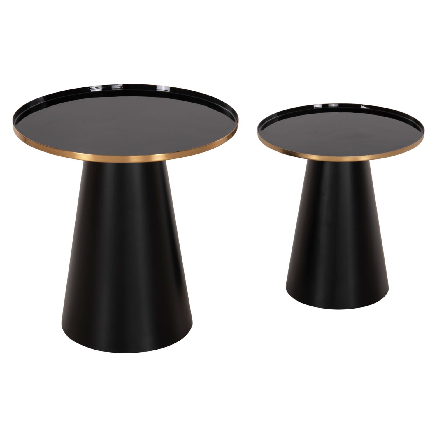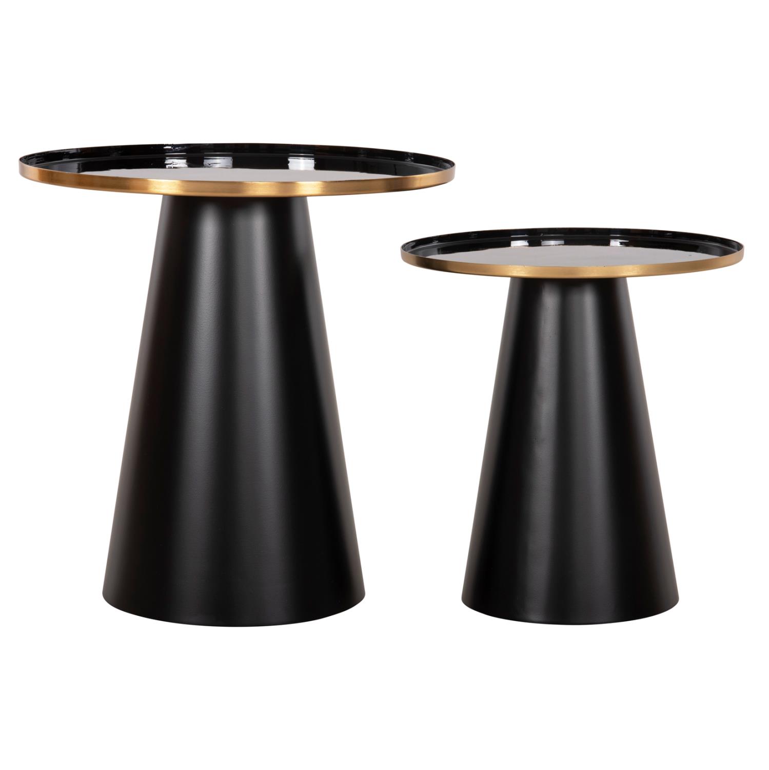 Το σετ 2 τραπεζιών BENG για το σαλόνι είναι μια από τις νέες προσθήκες στην γκάμα μας. Πρόκειται για 2 μεταλλικά τραπεζάκια στρογγυλά με κωνική βάση σε ΜΑΥΡΟ ματ χρώμα. Οι επιφάνειες είναι ΜΑΥΡΕΣ και έχουν χρυσή περίμετρο. Ιδανικά τόσο για το σπίτι, όσο και για επαγγελματικούς χώρους.