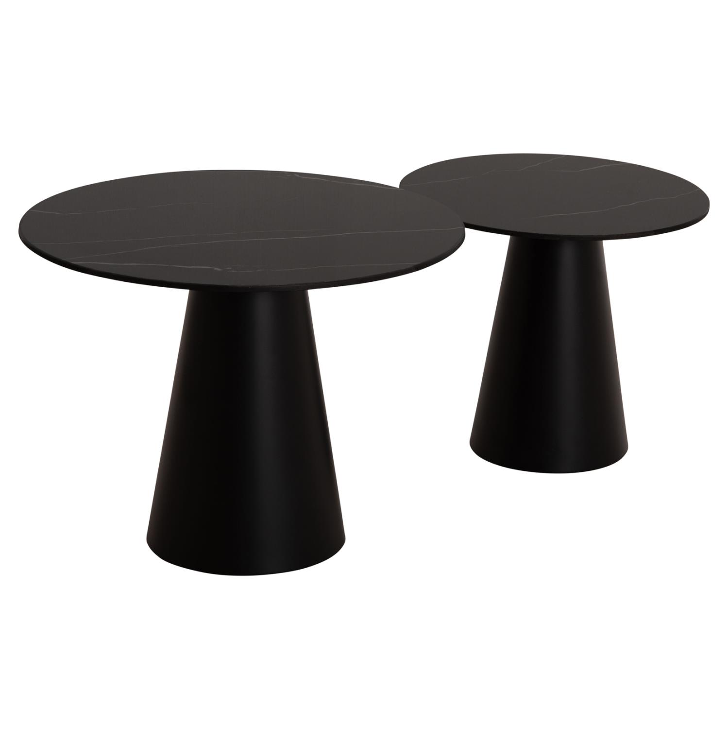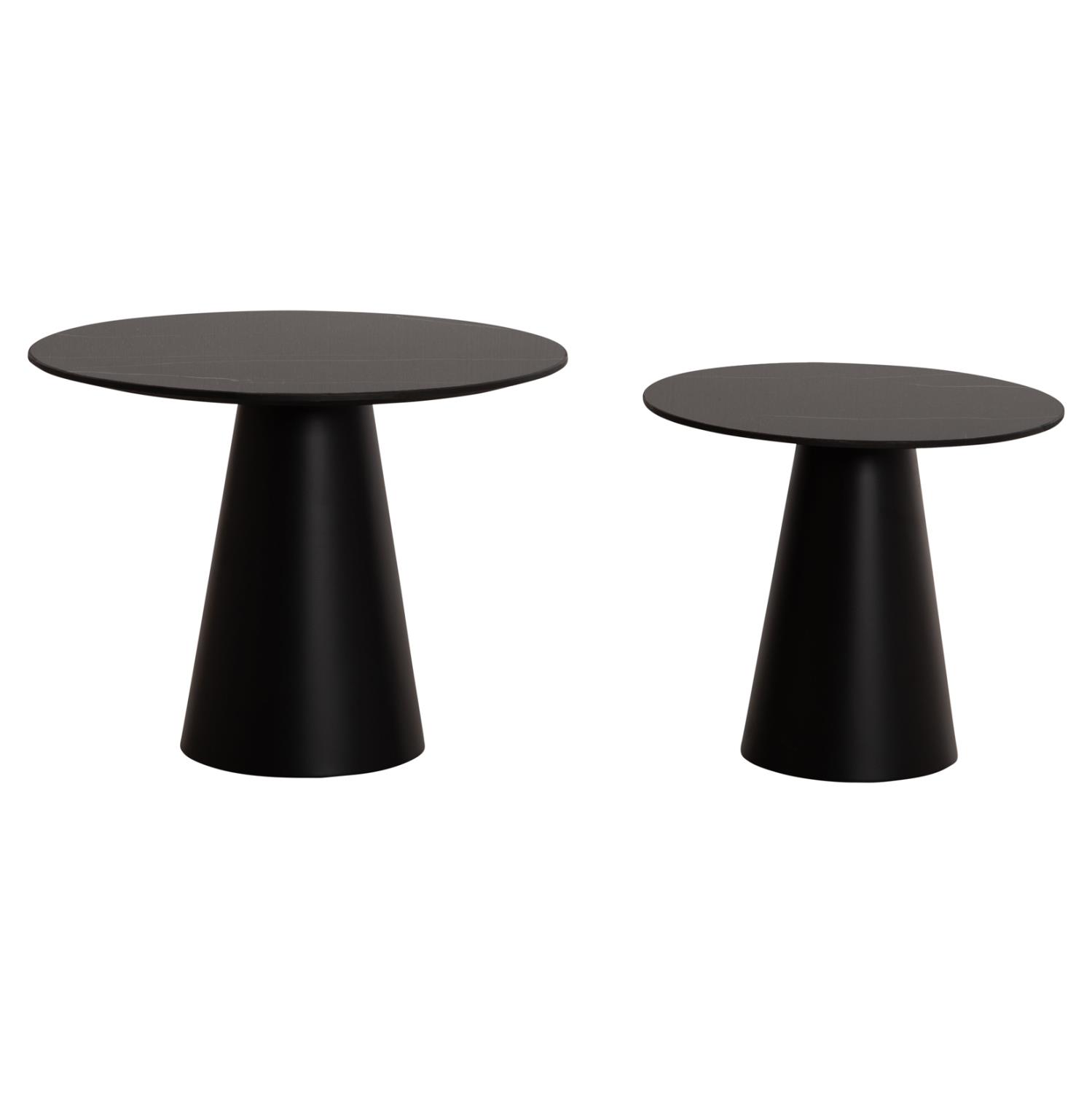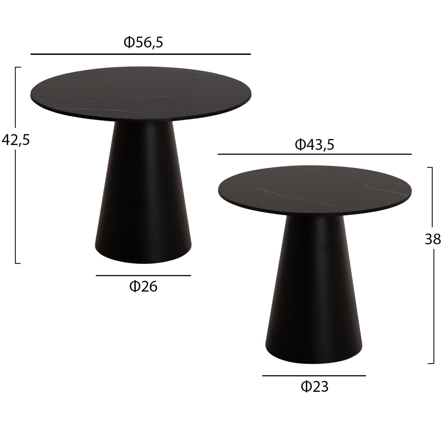 Το σετ 2 τραπεζιών DIEN για το σαλόνι είναι μια από τις νέες προσθήκες στην γκάμα μας. Πρόκειται για 2 μεταλλικά τραπεζάκια στρογγυλά με κωνική βάση με πτυχώσεις. Το χρώμα τους είναι ΜΑΥΡΟ. Οι επιφάνειες είναι κεραμικές, σε ΜΑΥΡΗ απόχρωση. Ιδανικά τόσο για το σπίτι, όσο και για επαγγελματικούς χώρους.