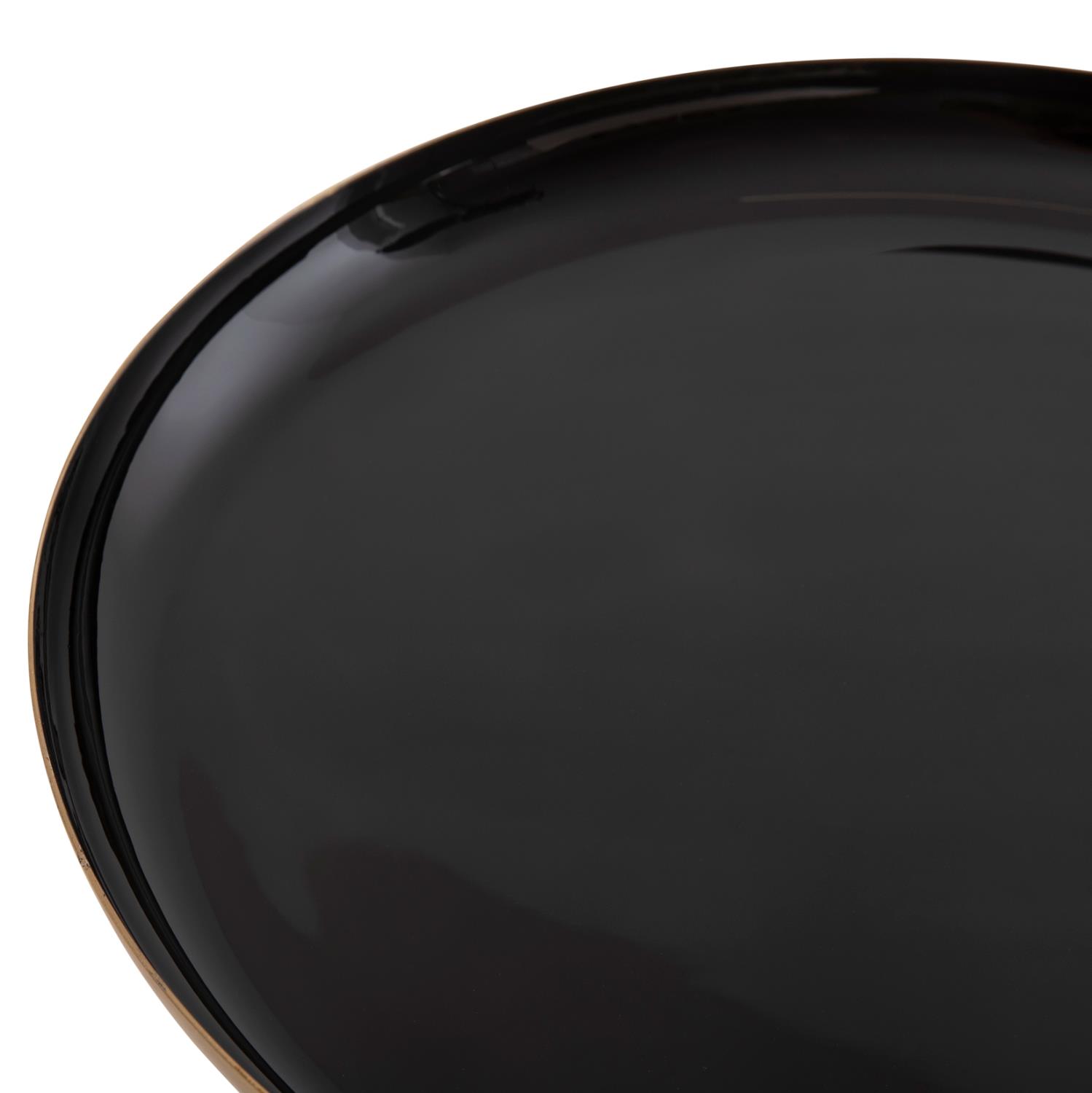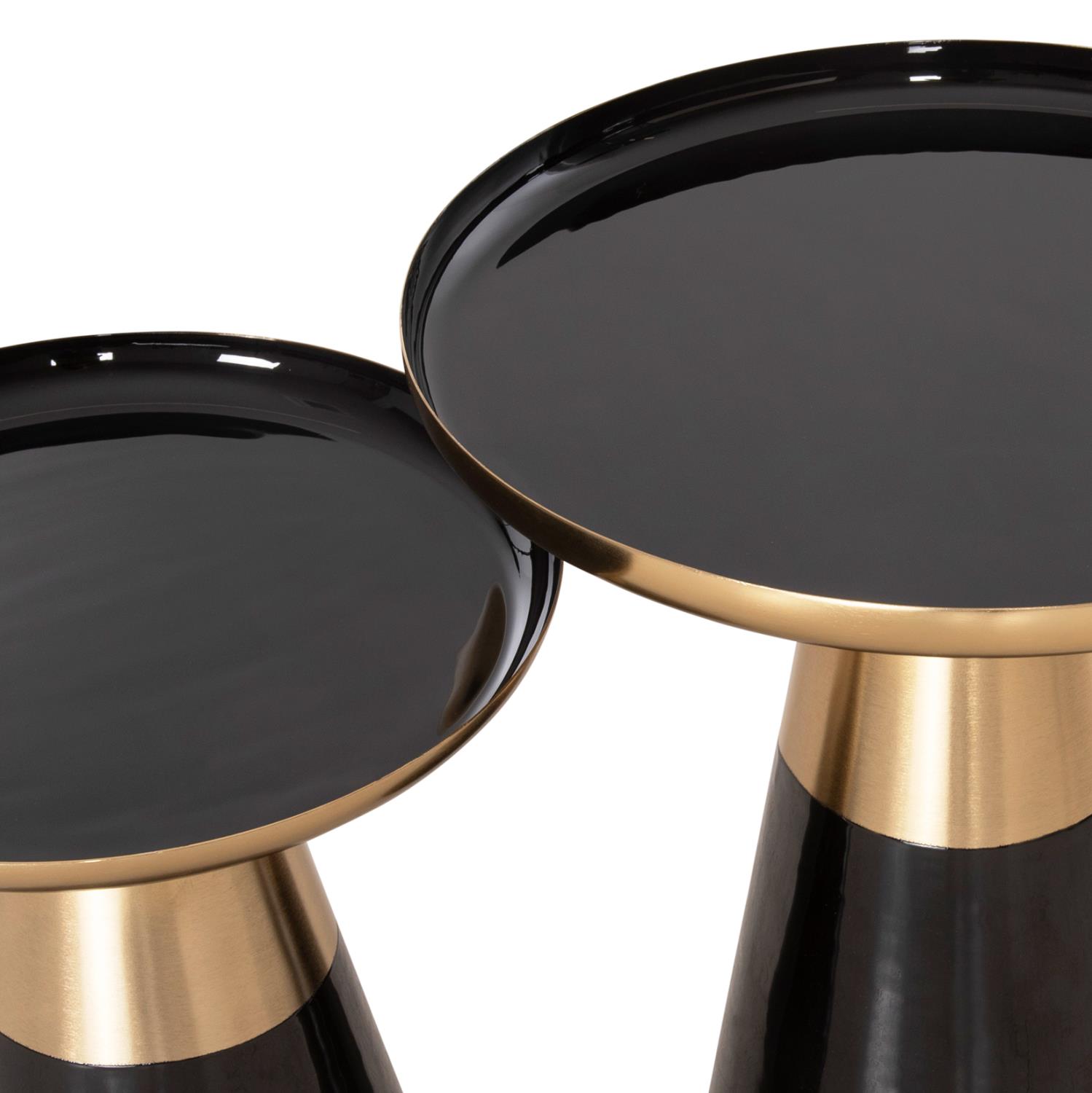 Το σετ 2 τραπεζιών OLUF για το σαλόνι είναι μια από τις νέες προσθήκες στην γκάμα μας. Πρόκειται για 2 μεταλλικά τραπεζάκια στρογγυλά με κωνική βάση σε ΜΑΥΡΟ γυαλιστερό χρώμα και ματ χρυσό χρώμα. Οι επιφάνειες είναι ΜΑΥΡΕΣ και έχουν χρυσή περίμετρο. Ιδανικά τόσο για το σπίτι, όσο και για επαγγελματικούς χώρους.